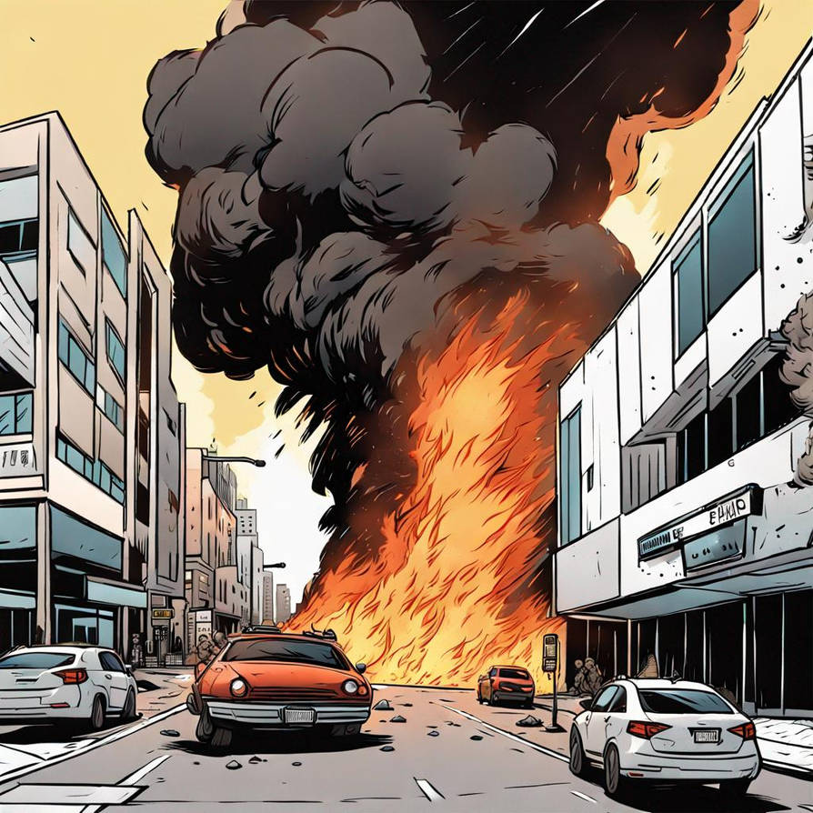 David paused in his retreat, hoping the battle was finally over. Aqua ran to help Brevis while Kal and Jolt waited to see as well. Then the robot’s head appeared as it walked back up the hill. Jolt and Kal were both about to attack when the robot released a bright green beam of energy from its face. It didn’t target any one person. It sprayed the surrounding ground with unrelenting power. Sod, dirt, trees, rocks, and heroes went flying every which way. Fires exploded up from areas and smoke mixed with dust clouded the park.
